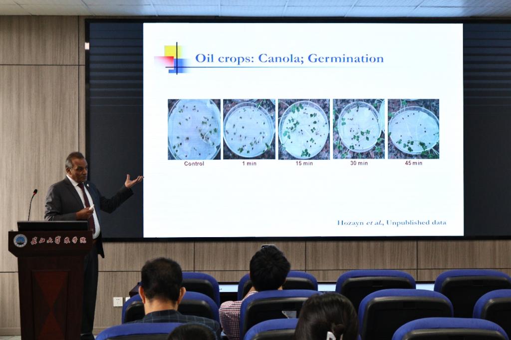 (通讯员 覃元)9月12日上午,应农学院曾凡荣教授的邀请,埃及国家研究中心农业与生物研究所代理院长 Mahmoud Hozayn 教授,在长江大学西校区农科大楼 3073 为农业相关专业师生作题为“Agro-Physics Technology: Magnetic Water for Higher Crops Productivity”的学术报告。