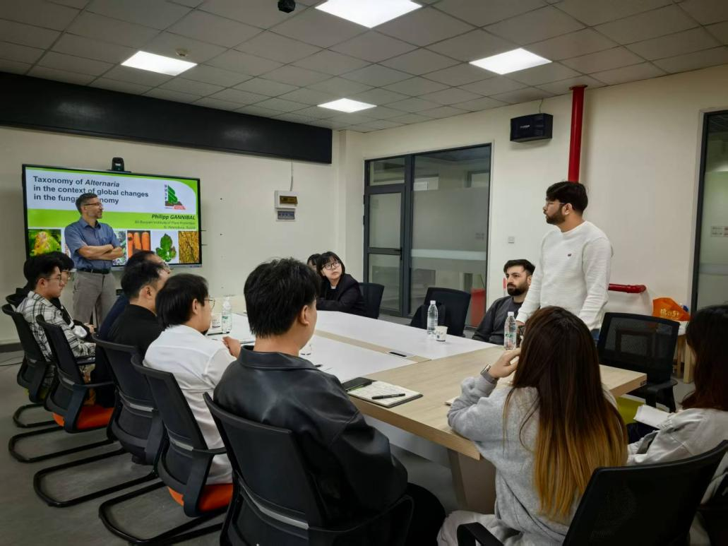 9 月 25 日,Philipp Gannibal 教授与邓建新教授团队聚焦链格孢菌系统分类展开专题研讨。双方通过报告的形式分享了链格孢菌分类方面的研究成果,就研究难点深入探讨,并初步达成合作意向。澳大利亚塔斯马尼亚大学博士 Muhammad Atif AZEEM、Usman IJAZ 也参与研讨。