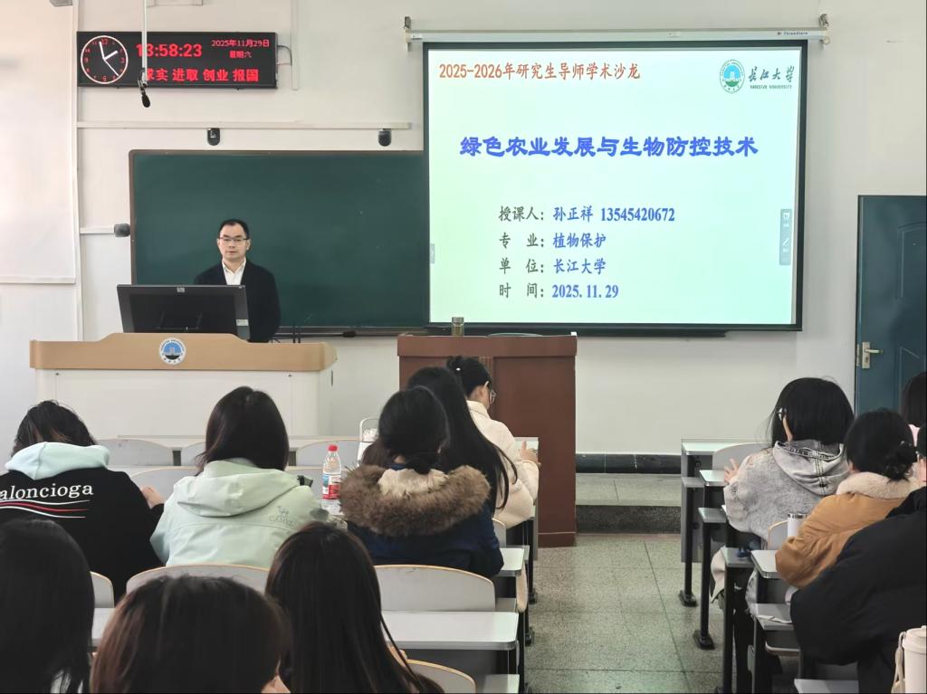 (通讯员 孙正祥)为深化研究生对现代农业科技前沿的理解,提升科研创新与产业融合能力,2025年11月29日,一场主题为“绿色农业发展与生物防控技术”的研究生导师学术沙龙在我校西校区7-304教室成功举办。本次沙龙由农学院孙正祥教授主讲,吸引了众多相关专业的研究生积极参与。
