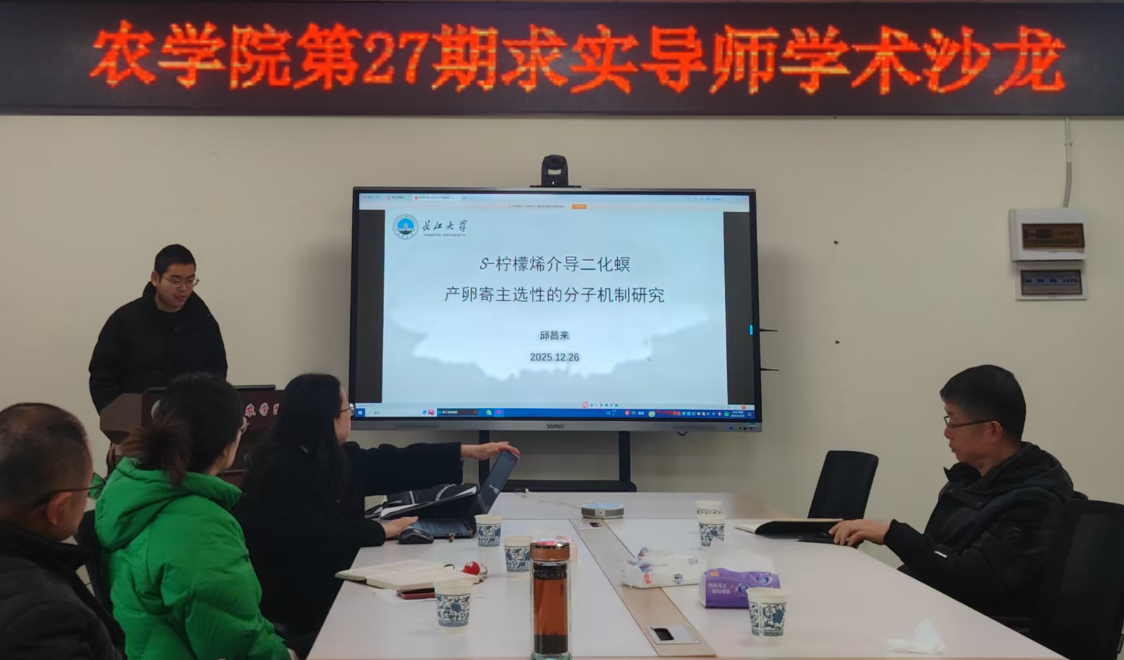 (通讯员 邱昌来)12月26日上午,农学院第27期“求实导师学术沙龙”在农科大楼3071会议室举行。活动以“植物保护前沿的多维探索”为主题,采用专题报告与互动研讨相结合的形式,围绕植物保护领域政策动态、科研进展与人才培养开展交流,现场学术氛围浓厚。