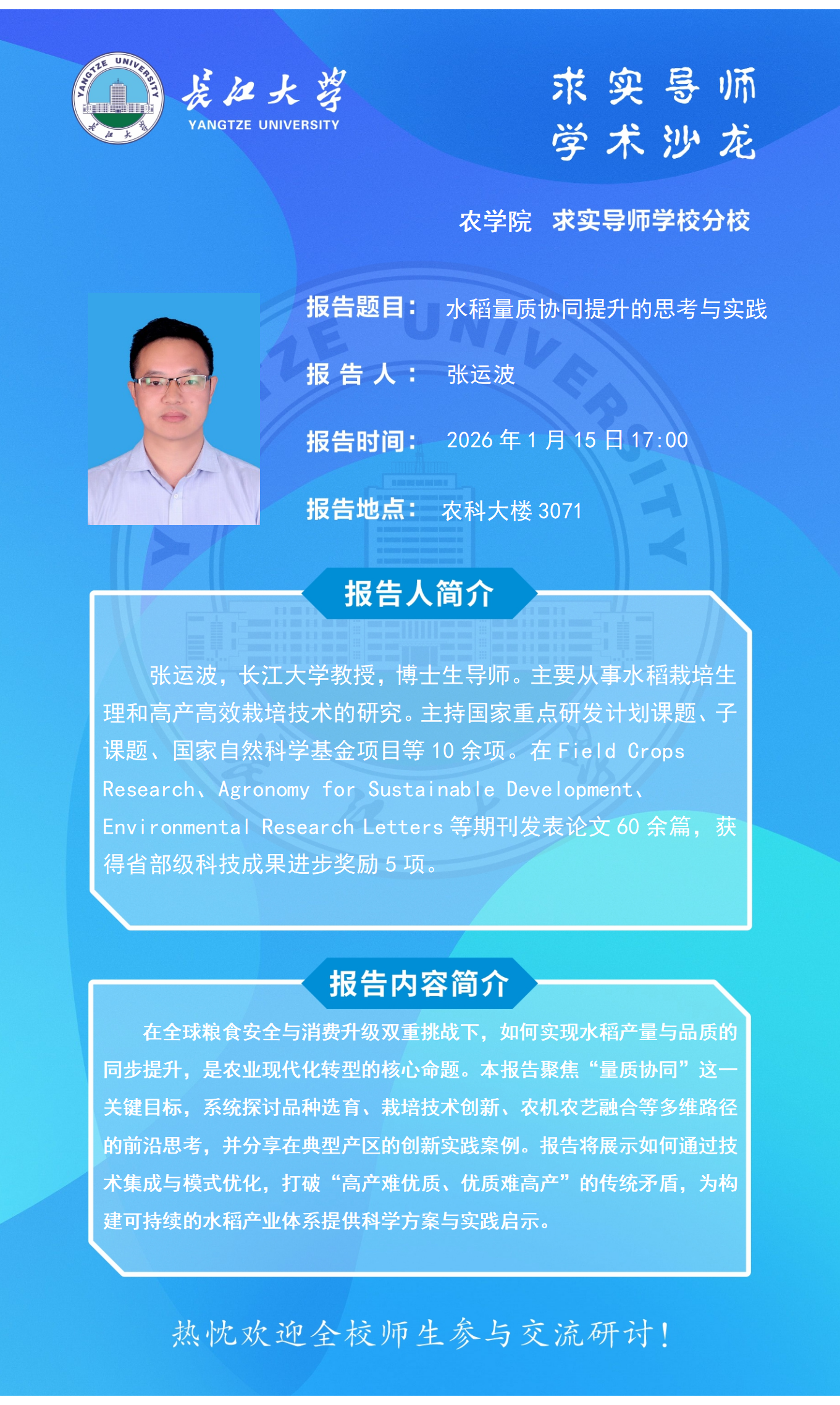饭香满厅 研思同行 农学院第六届稻米品鉴会暨第30期求实导师沙龙双彩绽放