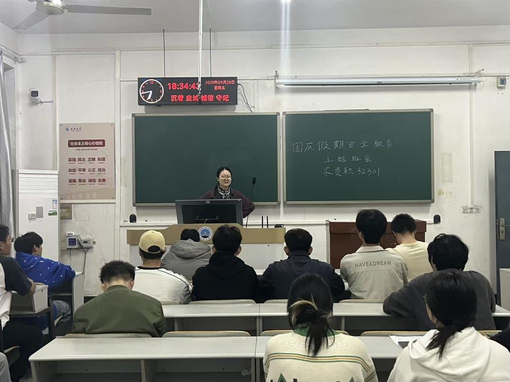 (通讯员 段文洁/文 张孝艺/摄)为切实增强大学生安全防范意识,确保国庆假期期间人身与财产安全,9月25-28日,农学院全体研究生、本科生陆续召开“国庆假期安全教育”主题班会。班会由班主任主持,全体同学参加。