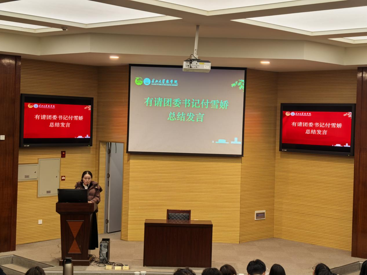 付雪娇老师对团委学生会年度工作给予充分肯定。她表示,全体成员以责任担当诠释青春底色,用实干奉献服务师生需求,各项工作取得了实实在在的成效。同时,她提出殷切期望:团委学生会要打造特色品牌活动,增强活动吸引力与影响力;还要强化自身建设,锤炼优良作风,树立学生组织良好形象;更要平衡学习与工作,珍惜大学时光,全面提升综合素质与履职能力。