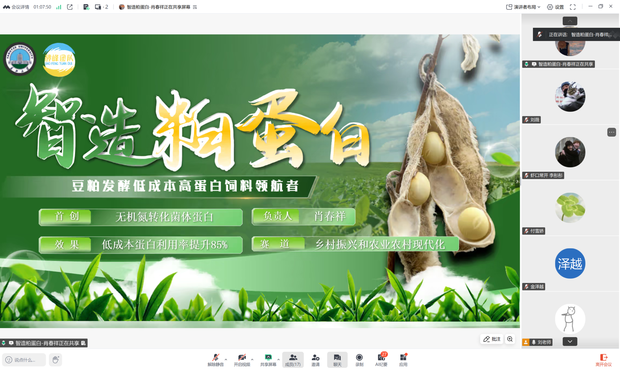 (通讯员 刘薇)为深入推进我院2026年第十五届“挑战杯”项目培育工作,进一步提升校级重点入围项目的质量与竞争力,2月2日晚7点,农学院通过腾讯会议线上组织召开了“挑战杯”项目辅导推进会。本次会议由学院辅导员付雪娇主持,校团委刘冬冬老师、学生会主席团成员刘薇,以及三个校级重点项目的全体成员共同参与。
