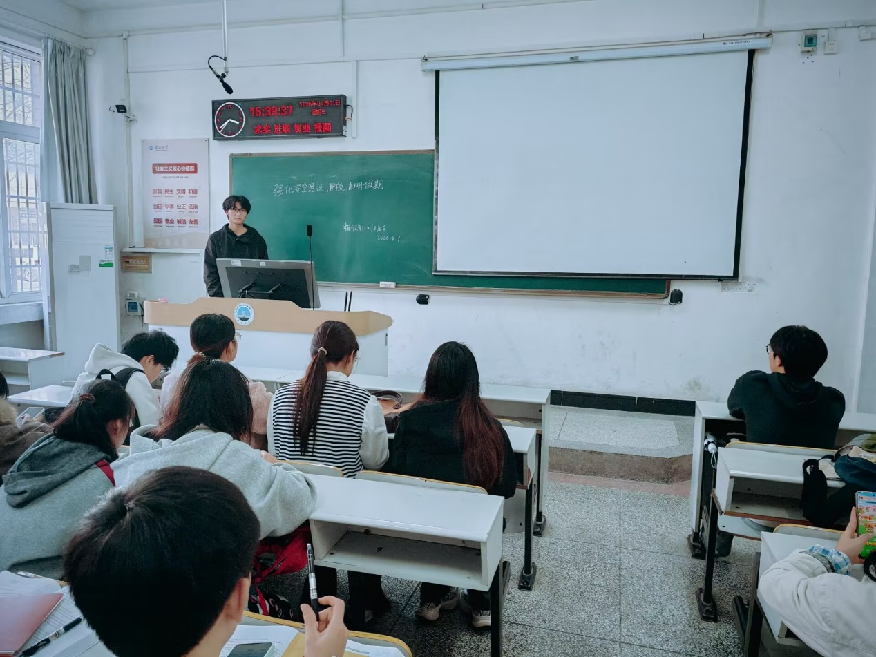 (通讯员 代派领)清明假期将至,为切实保障学生假期人身与财产安全,有效防范各类安全风险,3月31日-4月2日,我院本科生、研究生各班级组织开展清明假期安全主题教育班会,为全体同学送上假期安全 “防护课”。