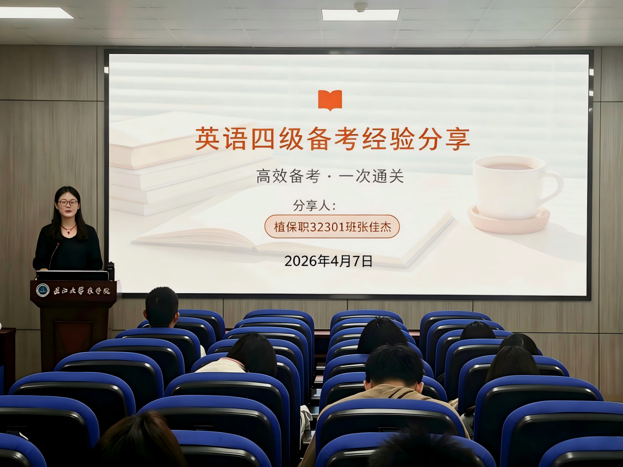 (通讯员 向建华 徐馨悦 宁菀婷 李佳康)为夯实 2025 级本科生英语基础,明晰四级备考方向,营造勤学善研、互助共进的优良学风,4月9日晚,农学院在农科大楼 3073 报告厅举办英语四级学习经验分享会。本次活动由学院精心组织,特邀 2023 级职高班优秀学子景文卓、张佳杰担任主讲,2025 级职高班全体同学到场参与。
