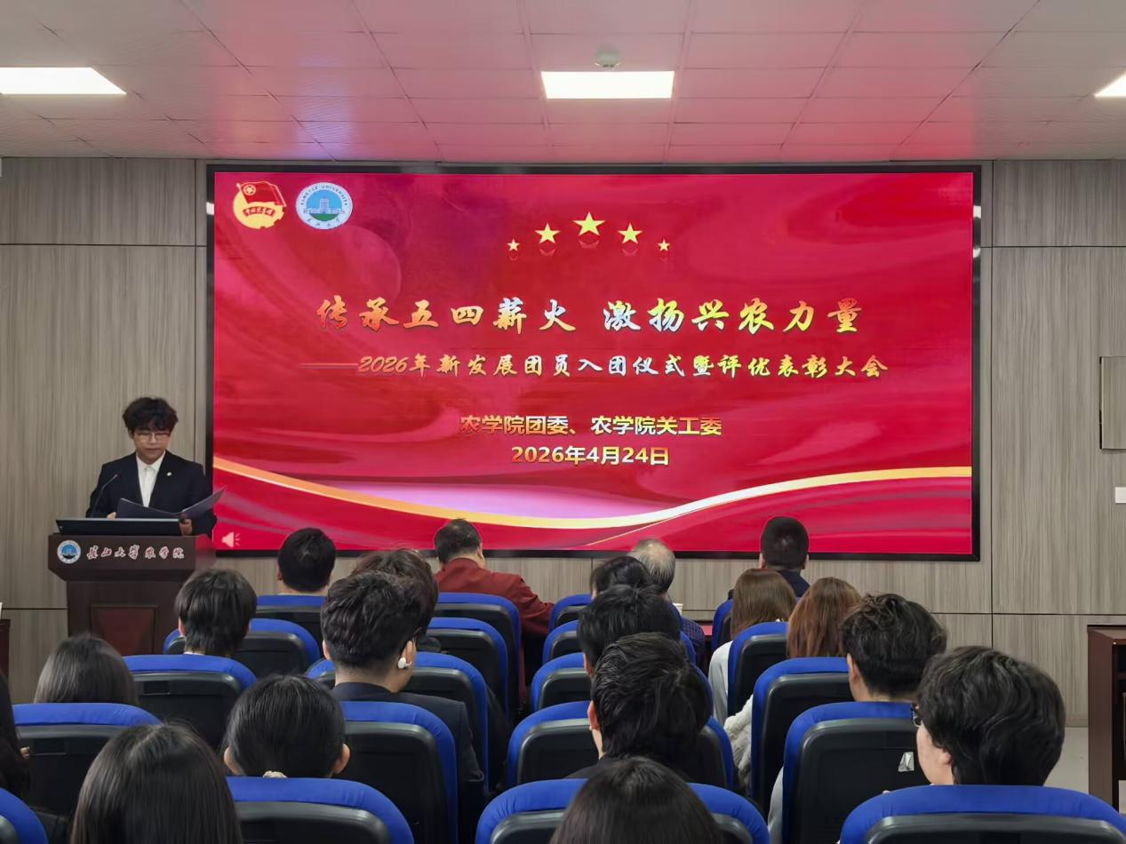 (通讯员 马靖雯/文 吴静宜 刘佳昊 康新陈/摄)为深入弘扬五四精神,进一步规范入团仪式流程,充分发挥榜样引领作用,4月24日中午,农学院在农科大楼3073会议室隆重举行新发展团员入团仪式暨评优表彰大会。出席本次活动的有学校关工委委员田应兵,西校区退休第三党支部书记袁正国,农学院党委副书记尹小华,各年级辅导员、2026年新发展团员、受表彰学生及24、25级各支部团干到会学习。