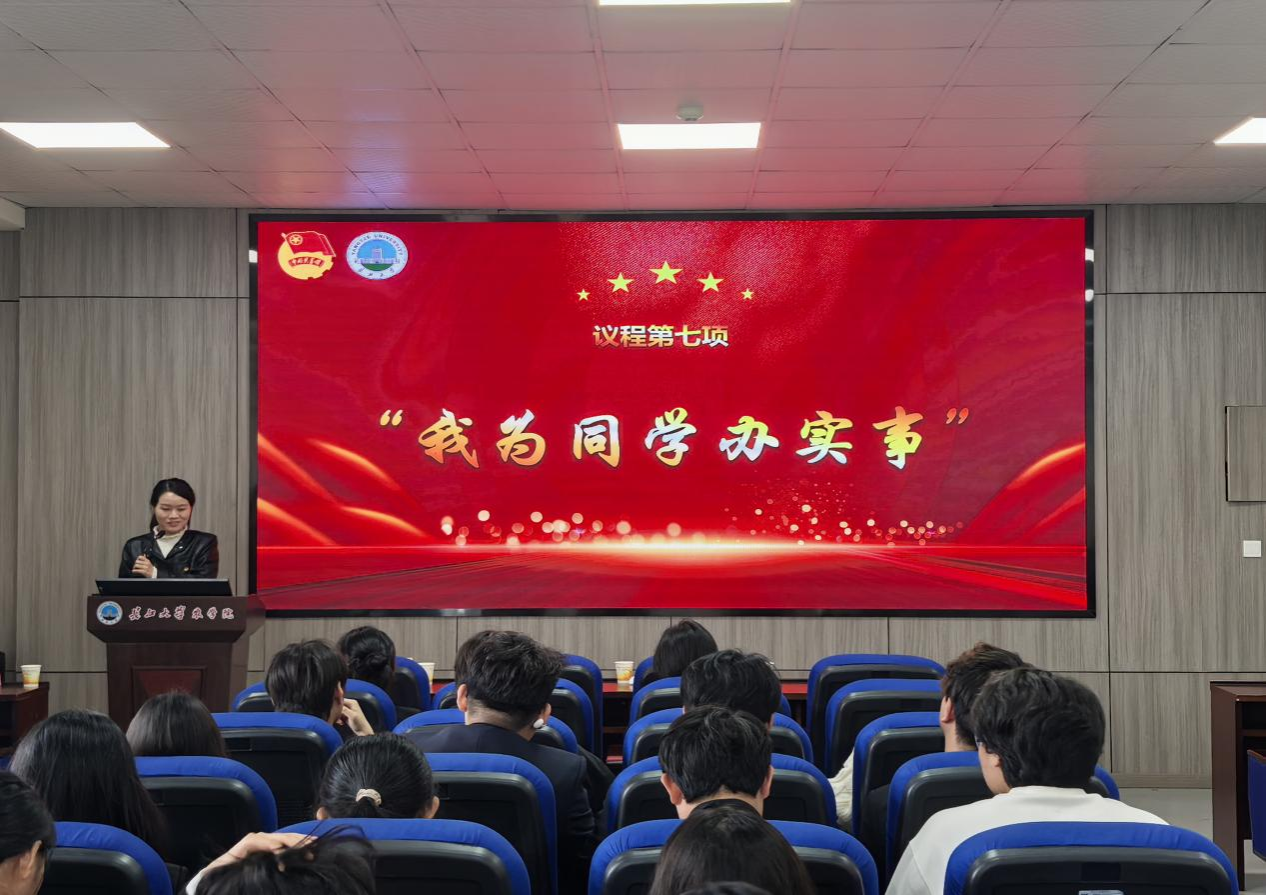 会议最后,现场设置了“我为同学办实事”专题提问环节。在场学生代表踊跃发言,围绕贴近日常生活的实际问题提出诉求。付雪娇老师从加强管理、制定措施等方面提出改进方案,切实回应同学们的诉求。