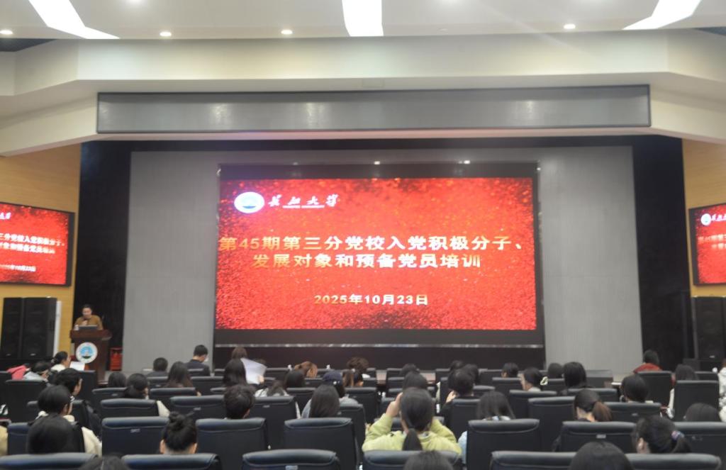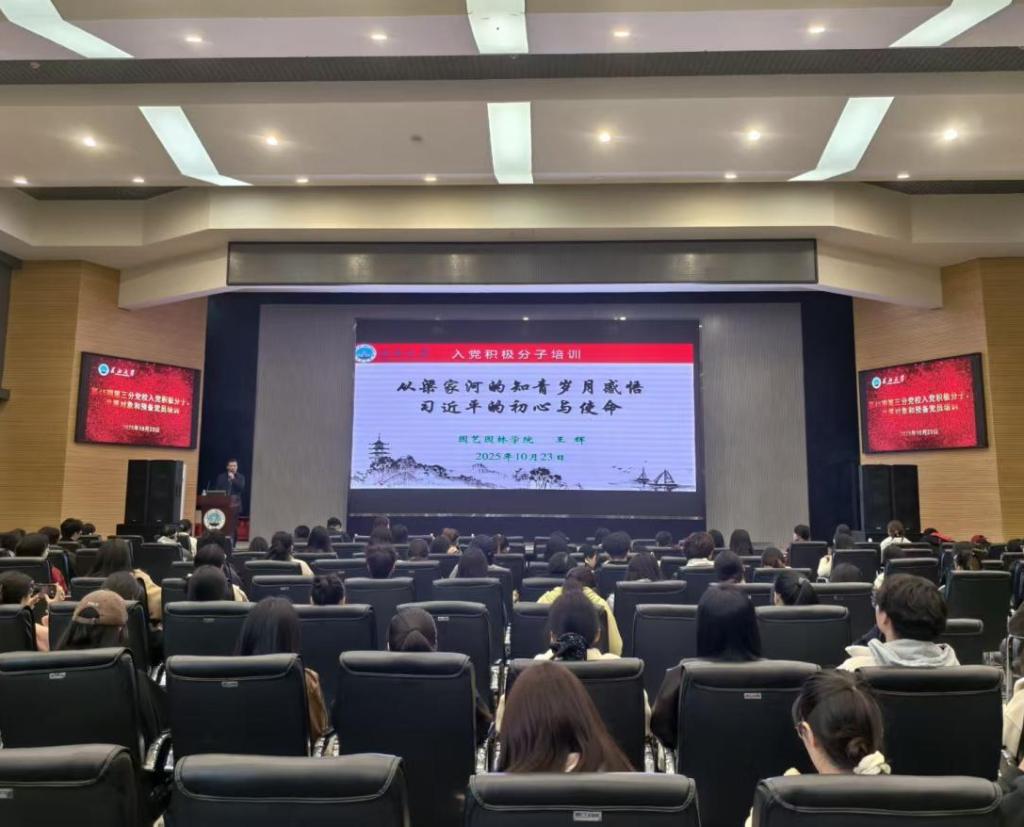 (通讯员 李佳康 徐馨悦/文 刘佳昊 康新陈 吴静宜/摄)为引导青年学员从领袖成长历程中汲取信仰力量、涵养为民情怀,10 月 23 日中午 12:30,农学院在农科大楼 1058 报告厅举办第 45 期第三分党校第二次培训。本次培训以 “从梁家河的知青岁月感悟习近平的初心与使命” 为主题,由园艺园林学院党委书记王辉主讲,辅导员卜文琼、李敏、唐玉婷和第三分党校入党积极分子、发展对象及预备党员全员参会。