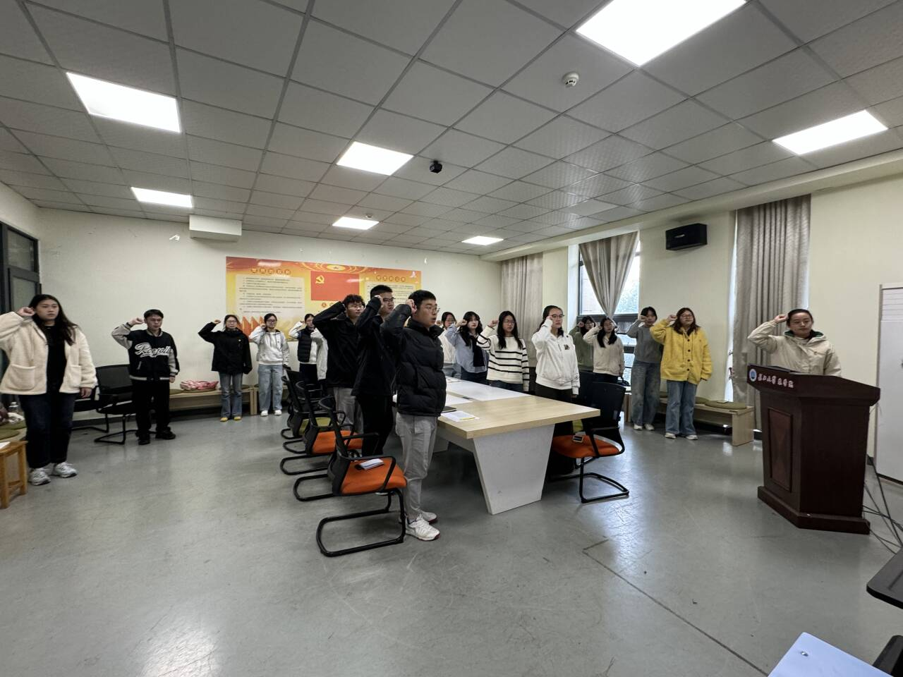 会议伊始,阮东孝同志带领全体党员重温入党誓词,王思婷同志对本月党费交纳情况进行说明,全体党员诵读《中国共产党章程》(总纲)的相关内容。