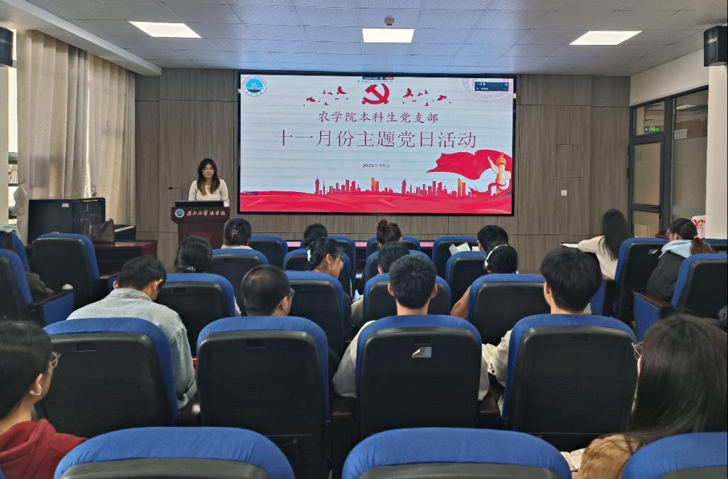 (通讯员 武芊睿)11月18日15:30,我院本科生党支部在农科大楼3073开展十一月份支部主题党日活动,本次活动通过“线上+线下”相结合的方式进行,全体党员参加,由黄承石老师主持。