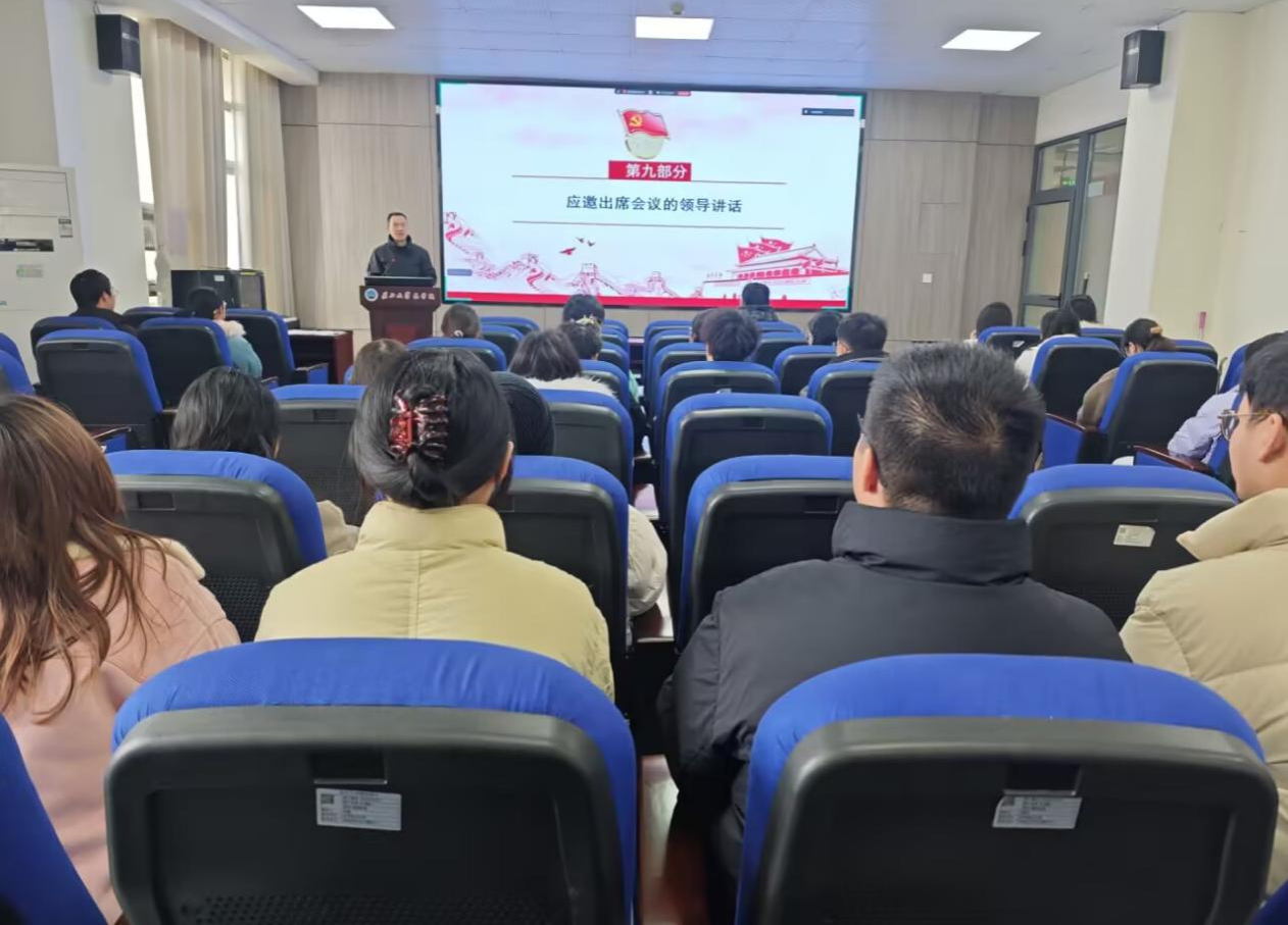 会议最后,学院党委书记周锦华发表讲话。他首先代表学院党委向研究生第二党支部上一届支委会卓有成效的工作、为学院高质量发展作出的贡献表示诚挚感谢,并向新一届支委会的成立表示热烈祝贺。他对研究生第二党支部及全体党员提出工作要求:一是加强政治建设和理论武装,筑牢思想根基;二是增强政治功能和组织功能,夯实基层基础;三是强化作风建设和纪律建设,打造清廉支部;四是强化担当作为和责任落实,推动事业发展。