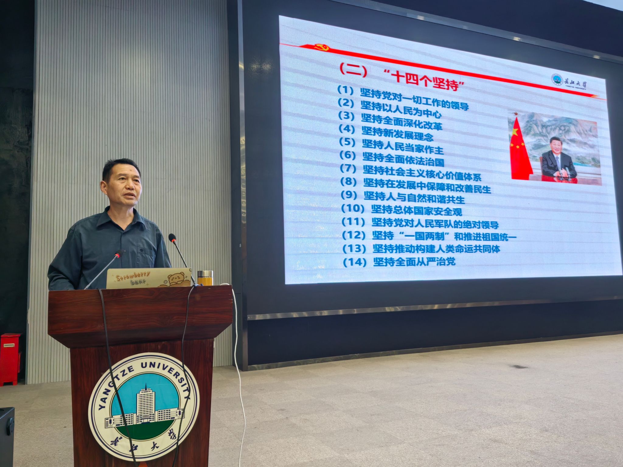 培训中,周锦华以凝心铸魂为主线,结合党的二十大报告核心内涵,系统梳理了习近平新时代中国特色社会主义思想的发展脉络与核心要义,引导学员深刻把握理论精髓。立足学校办学特色,他紧扣农业科技自立自强、国家粮食安全等关键议题,深入阐释中国式现代化的丰富内涵,勉励农科学子坚守入党初心,把个人理想融入国家农业发展大局。此外,周锦华详细解读入党流程与规范要求,鼓励学员坚持理论学习与专业实践相融合,以扎实学识和实际行动向党组织靠拢。